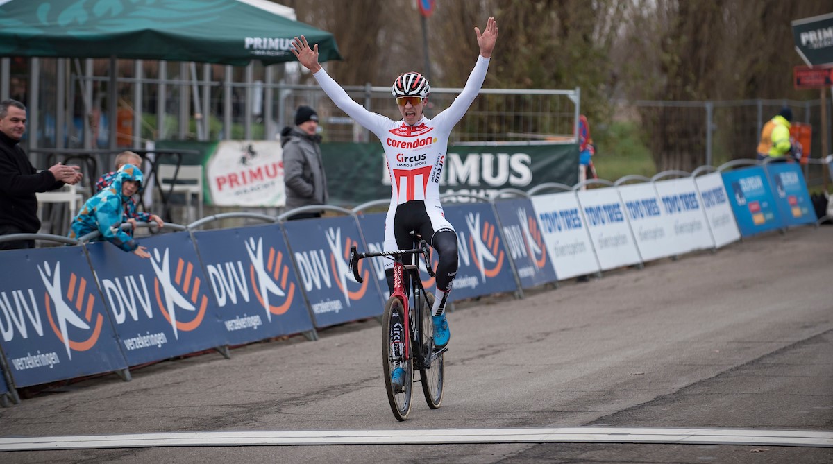 Lars Boven was de beste bij de juniores in de Scheldecross in Antwerpen en Niels Vandeputte won de strijd in de beloftencategorie ...