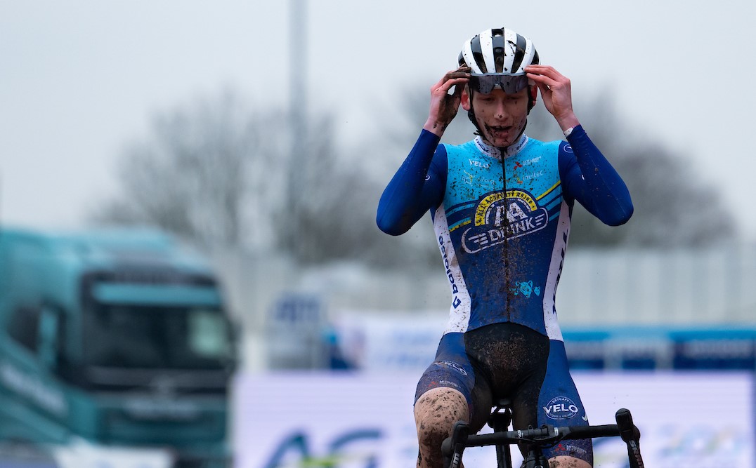 Al heel vroeg na het startsignaal voor het BK veldrijden voor de junioren heren schudde Arthur Van Den Boer een snelle ronde uit zijn benen. De renner van het AA Drink jongerenteam pakte een voorsprong en wist te soleren richting de tricolore. Even kwam de concurrentie dichter ...