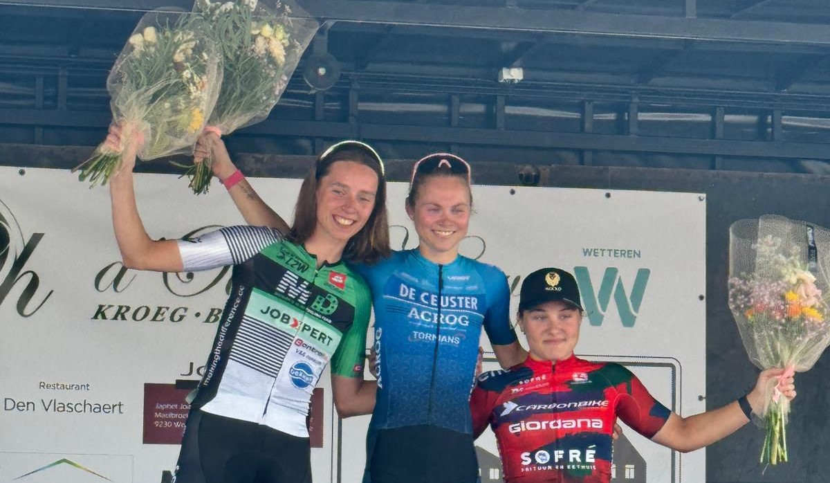 “Het treintje met Jesse was richting de laatste kilometers goed vertrokken, tot er plots een uitval aan de andere kant kwam van Marjet Groene. Ik zag dat de Nederlandse heel wat power in de benen had en ben er onmiddellijk achter gesprongen. Snel namen we enkele meters en door het goede afstopwerk van mijn collega’s kon ik het in een sprint voor de overwinning afmaken. Het is de eerste keer, sinds mijn tijd bij de junioren, dat ik een wegwedstrijd win. Ja, het doet deugd omdat het ook aanvoelt als een teamoverwinning. Toen we vertrokken had ik vermoeide benen van de afgelopen intense trainingsdagen. De overwinning voelt daarom dubbel zo goed en bevestigt eveneens mijn opbouwende condititie. Het is ook een mooie opsteker richting het komende crossseizoen, dat langzaam nadert en waar ik enorm naar uitkijk”, aldus een blije Laura Verdonschot.